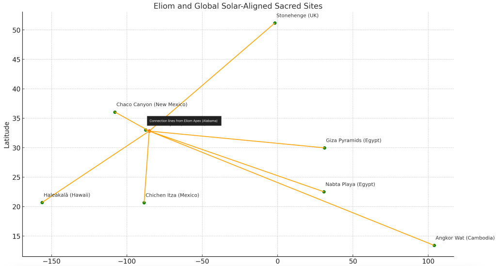 Eliom is a unique energetic site located in Chambers County, Alabama, whose physical, astronomical, and geomagnetic characteristics show technical similarities to some of the most revered spiritual locations in the world, including Angkor Wat (Cambodia), Moundville (Alabama), and certain solstice-aligned Hindu temples in India.